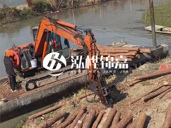 水挖(也就是水上挖掘機(jī))的液壓錘功率直接決定能打多長(zhǎng)的樁。普通 60 型水上挖掘機(jī),液壓錘沖擊力有限,最多打到 5 米就很吃力了 —— 就像人用小錘子敲長(zhǎng)釘子,容易把釘子敲彎。而大型 200 型以上的水挖,液壓系統(tǒng)能提供足夠的沖擊力和穩(wěn)定性,才能駕馭 8 米以上的長(zhǎng)木樁。泓樺錦嘉能打 8 米木樁,首先靠的就是設(shè)備優(yōu)勢(shì)。他們用的是定制款水上挖掘機(jī),液壓錘經(jīng)過(guò)改裝,沖擊力比常規(guī)設(shè)備提升 30%,而且機(jī)身配重更合理,在水面作業(yè)時(shí)減少晃動(dòng),避免長(zhǎng)木樁因受力不均斷裂。